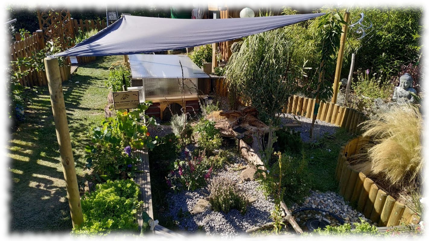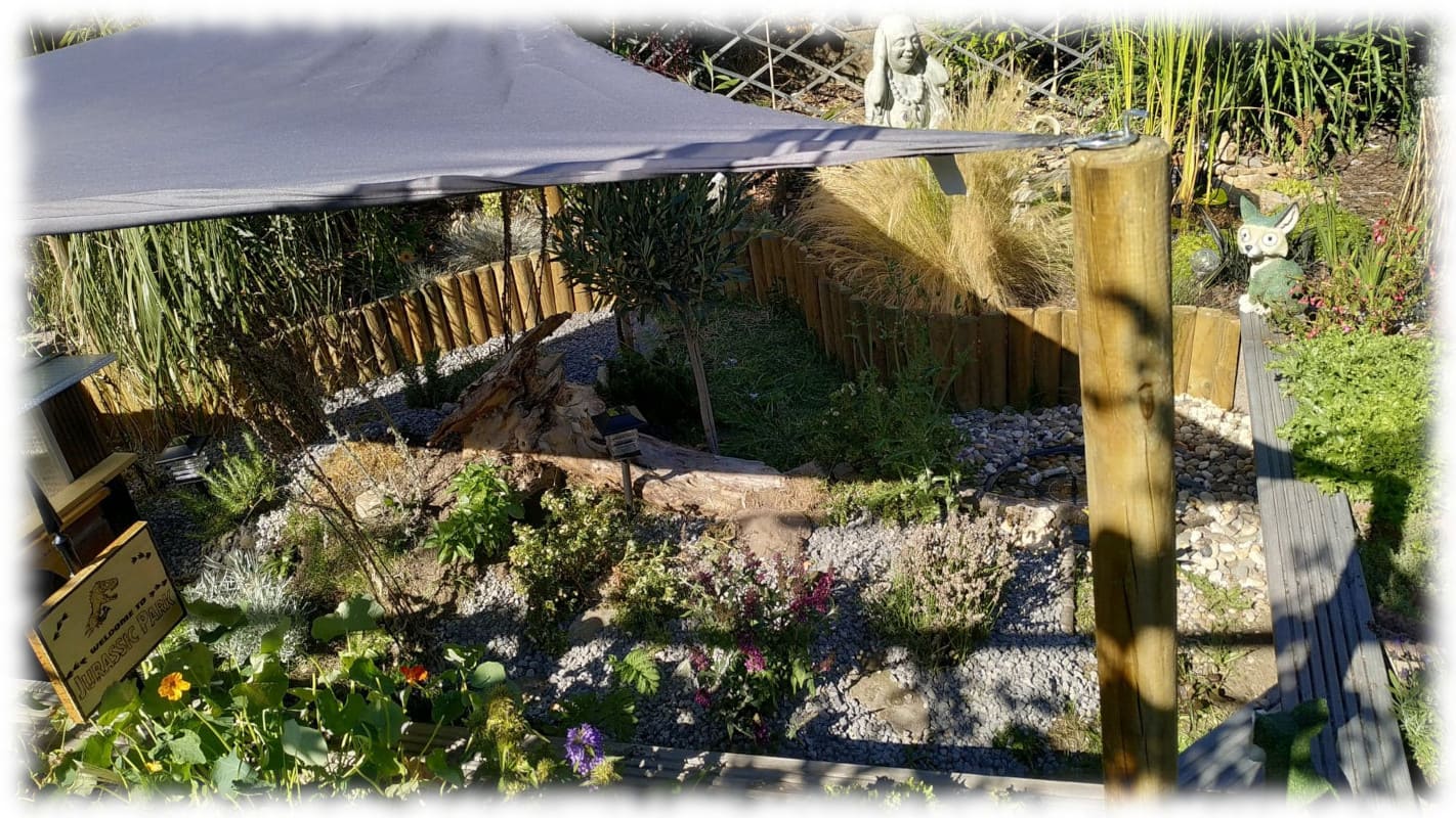 Von daher kamen wir auf die Idee, was uns auf der Sitzecke Schatten spendet, könnte bei den Schildis auch nicht ganz so verkehrt sein.